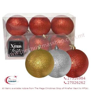 GLITTER BAL PACK 6 PCS 6CM RED OR GOLD. TS931694
