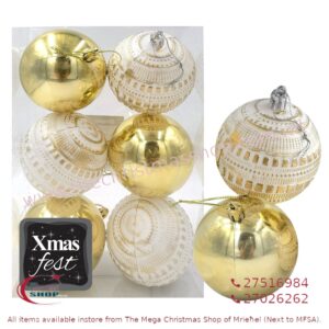 BOX OF 6 GOLD BAUBLES. 10CMS. CG142541