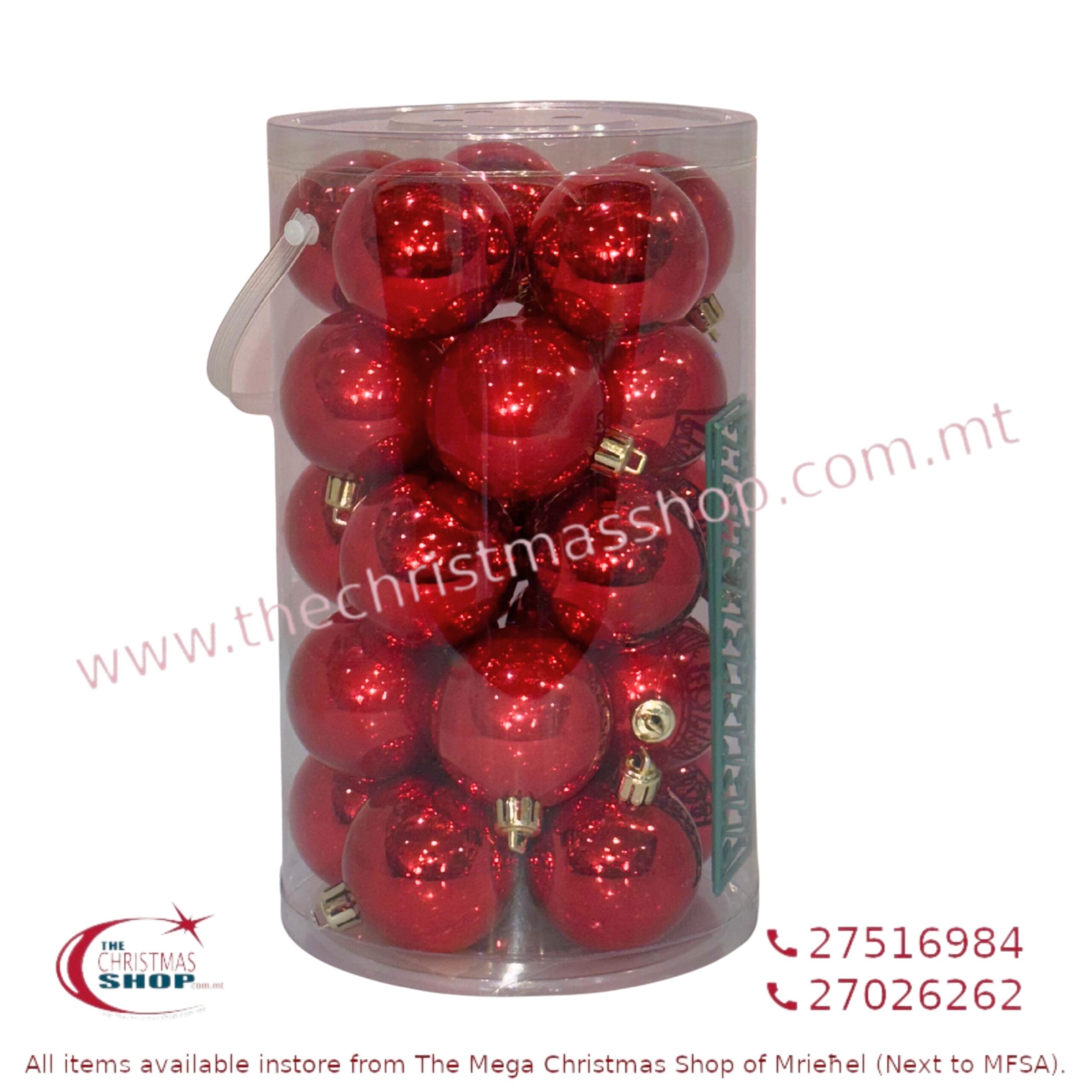 TUBE OF 25 RED BAUBLES. WITH HOOKS. 6CMS. CG242408