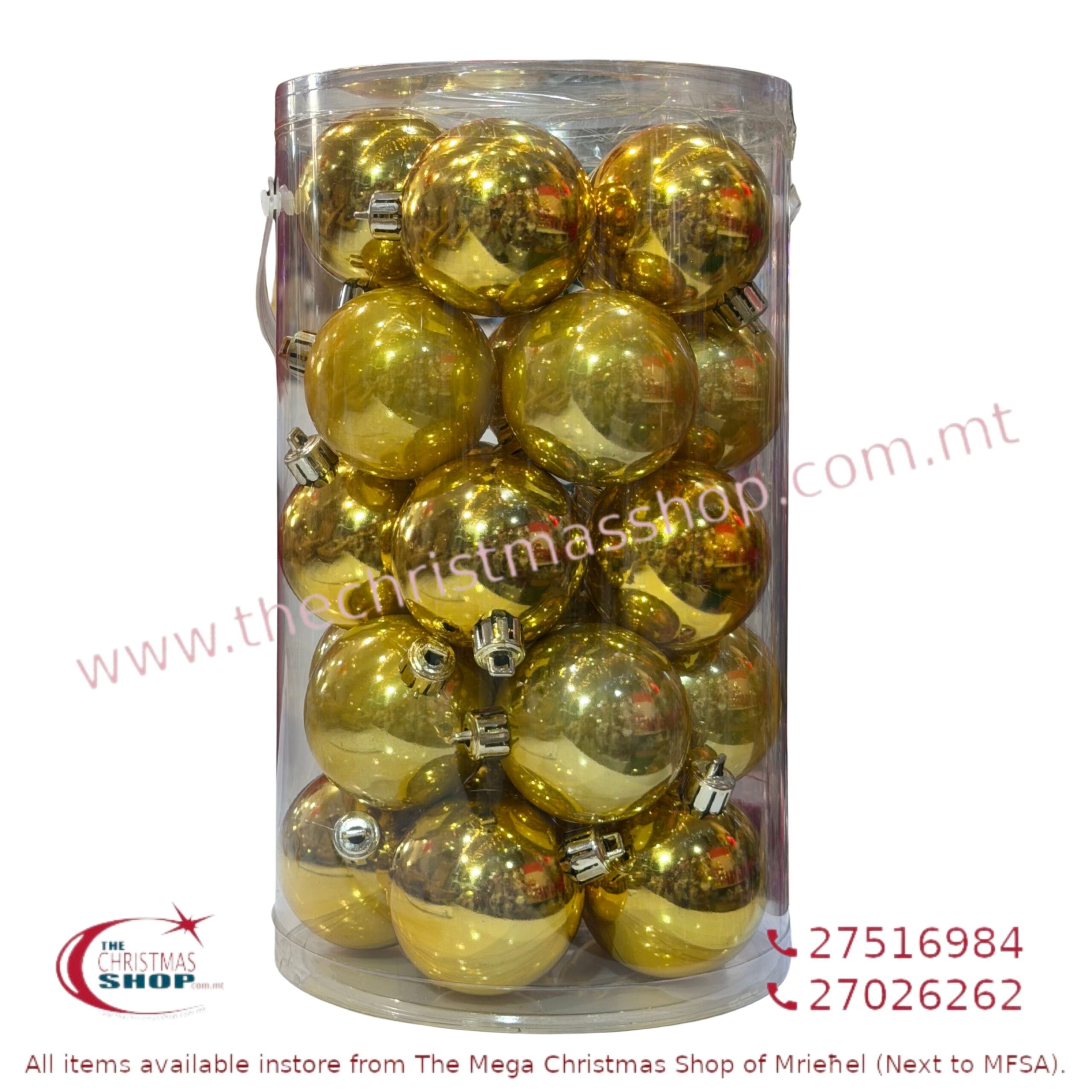 TUBE OF 25 GOLD BAUBLES WITH HOOKS. 6CMS. CG242415