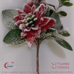 ARTIFICIAL BURGUNDY VELEVET POINSETIA BRANCH WITH GLITTER. IL914298