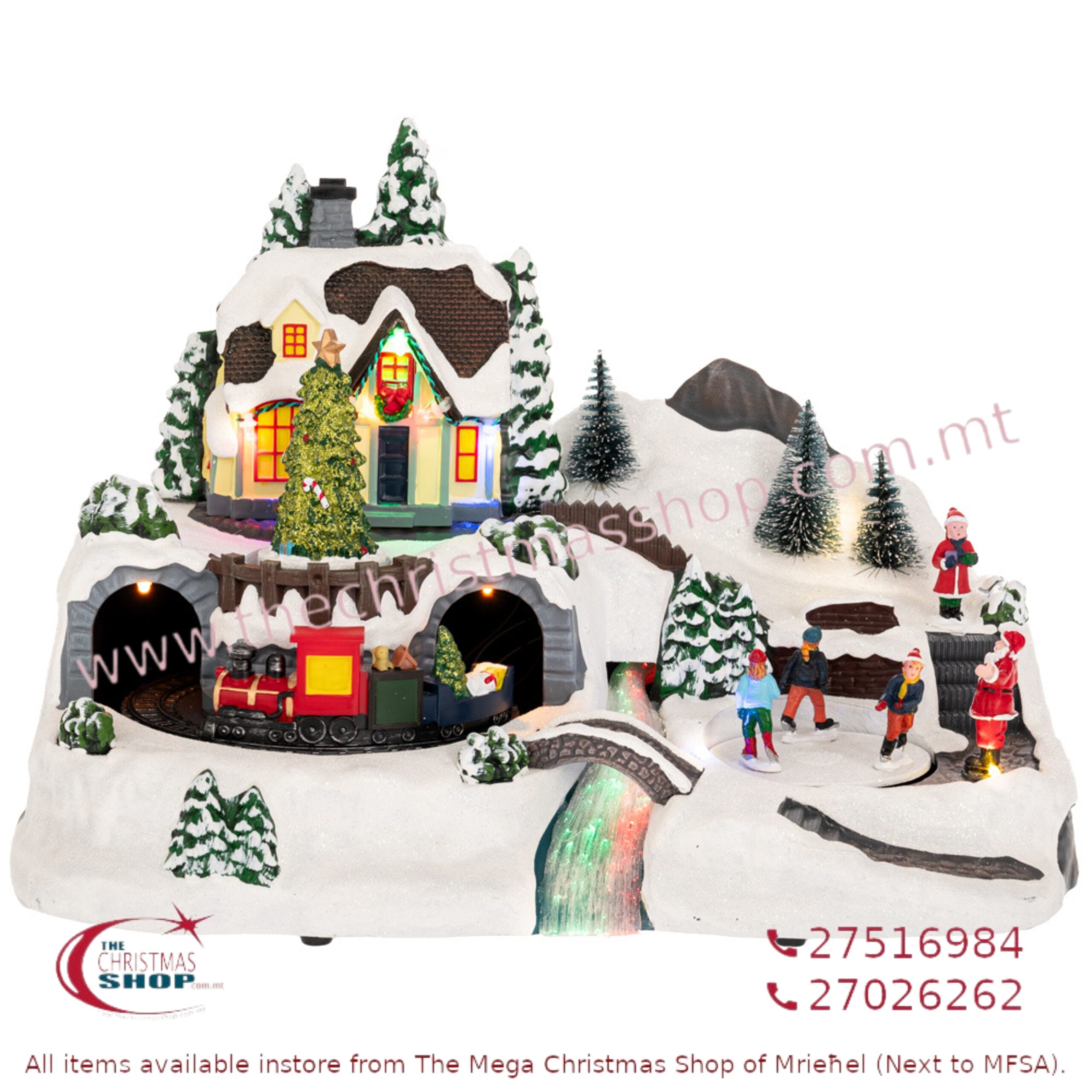 XMAS LIGHTED VILLAGE WITH ANIMATED ICE SKATERS & TRAIN. IL907481