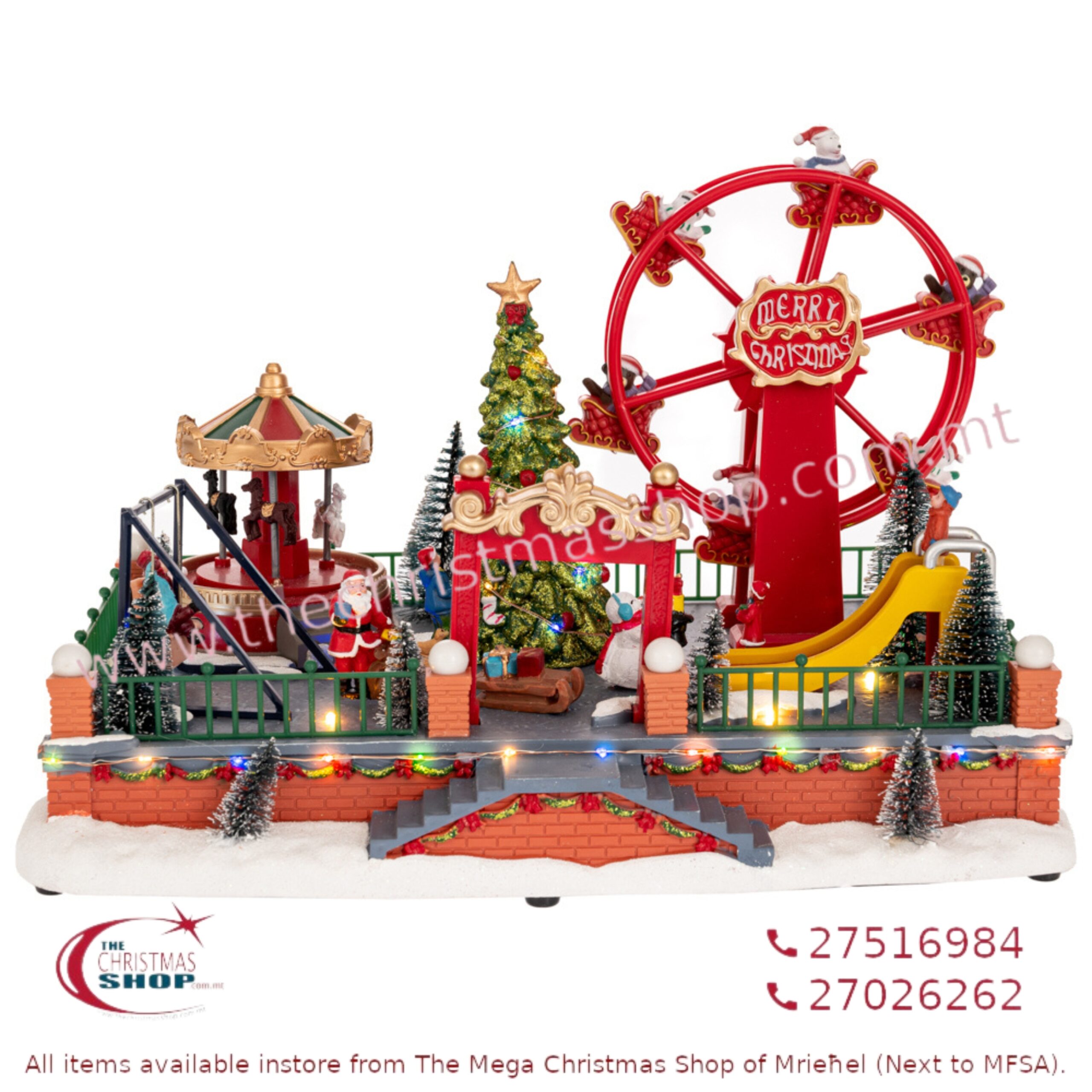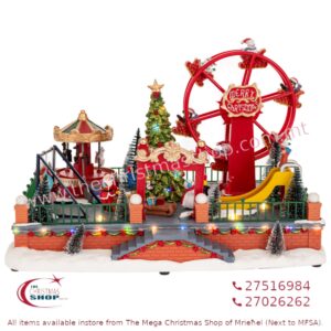 XMAS LIGHTED AMUSEMENT PARK WITH ANIMATED CAROUSEL & FERRIES WHEEL. IL907535