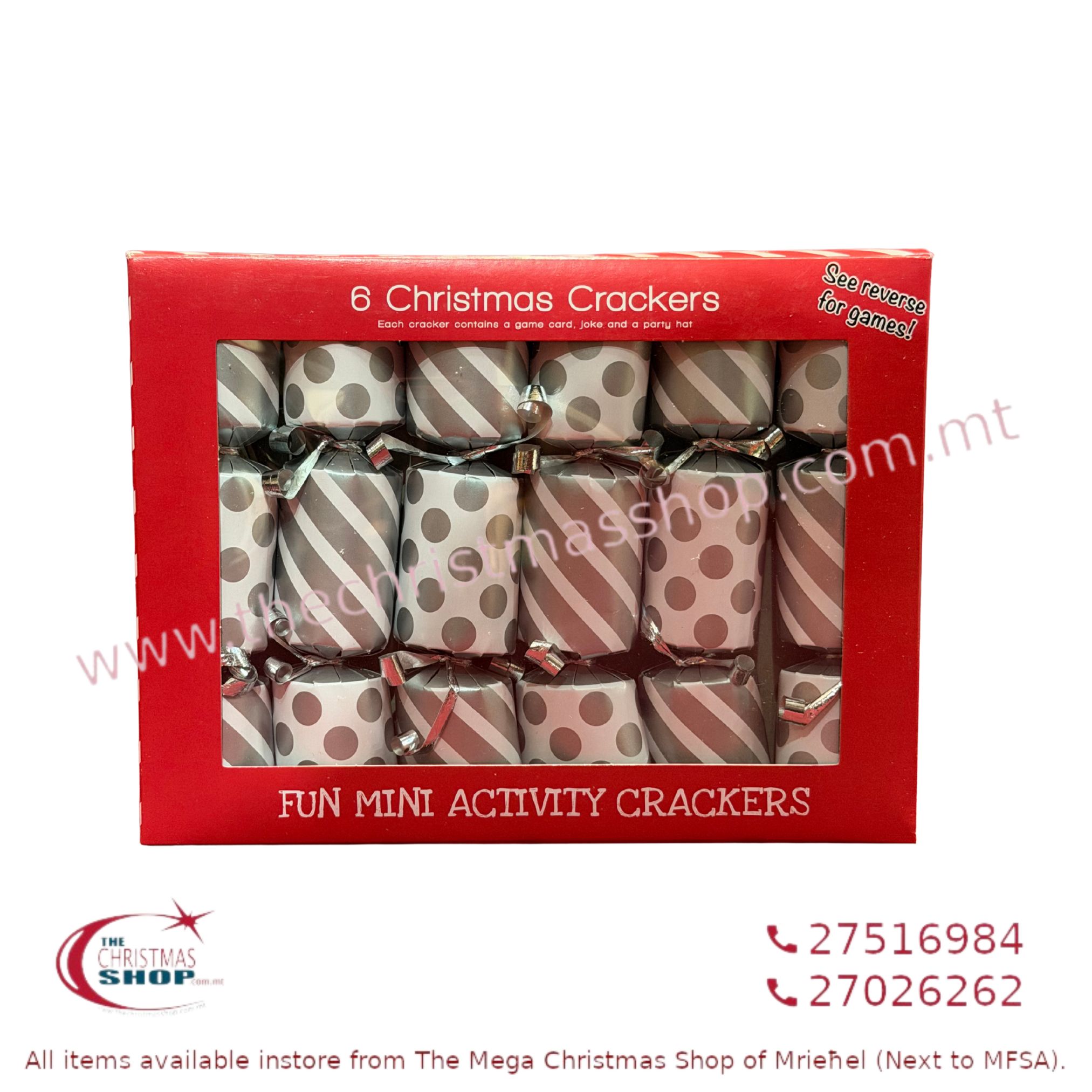 / BOX OF 6 SILVER MINI CHRISTMAS CRACKERS. AN375900