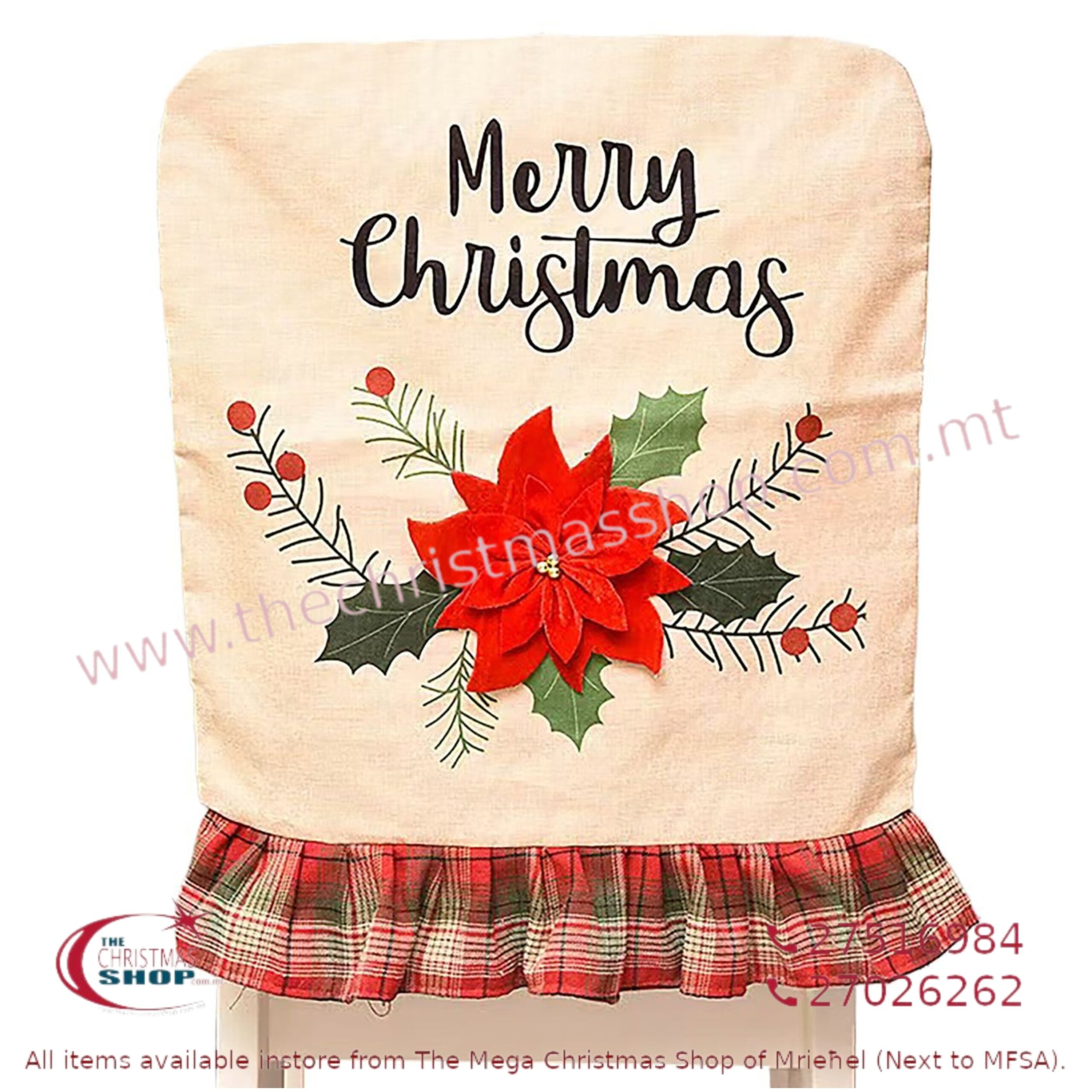 BURLAP CHAIR BACK COVER WITH 3D POINSETTIA. TS933937