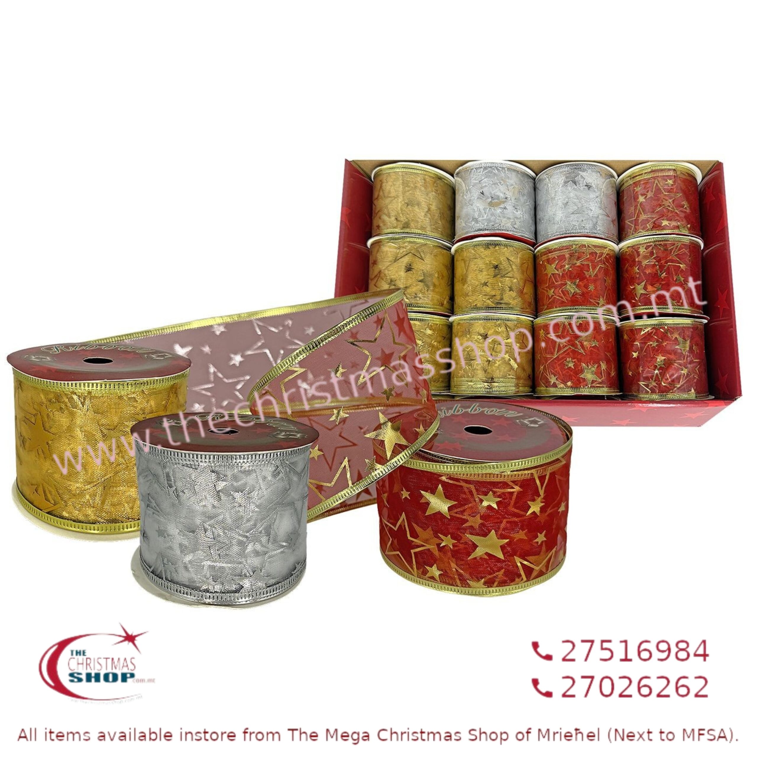 ORGANZA CHRISTMAS RIBBON-STAR PATTERN. TS932224 quantity