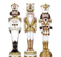 RESIN NUT CRACKER WHITE AND GOLD 35CMS 234312