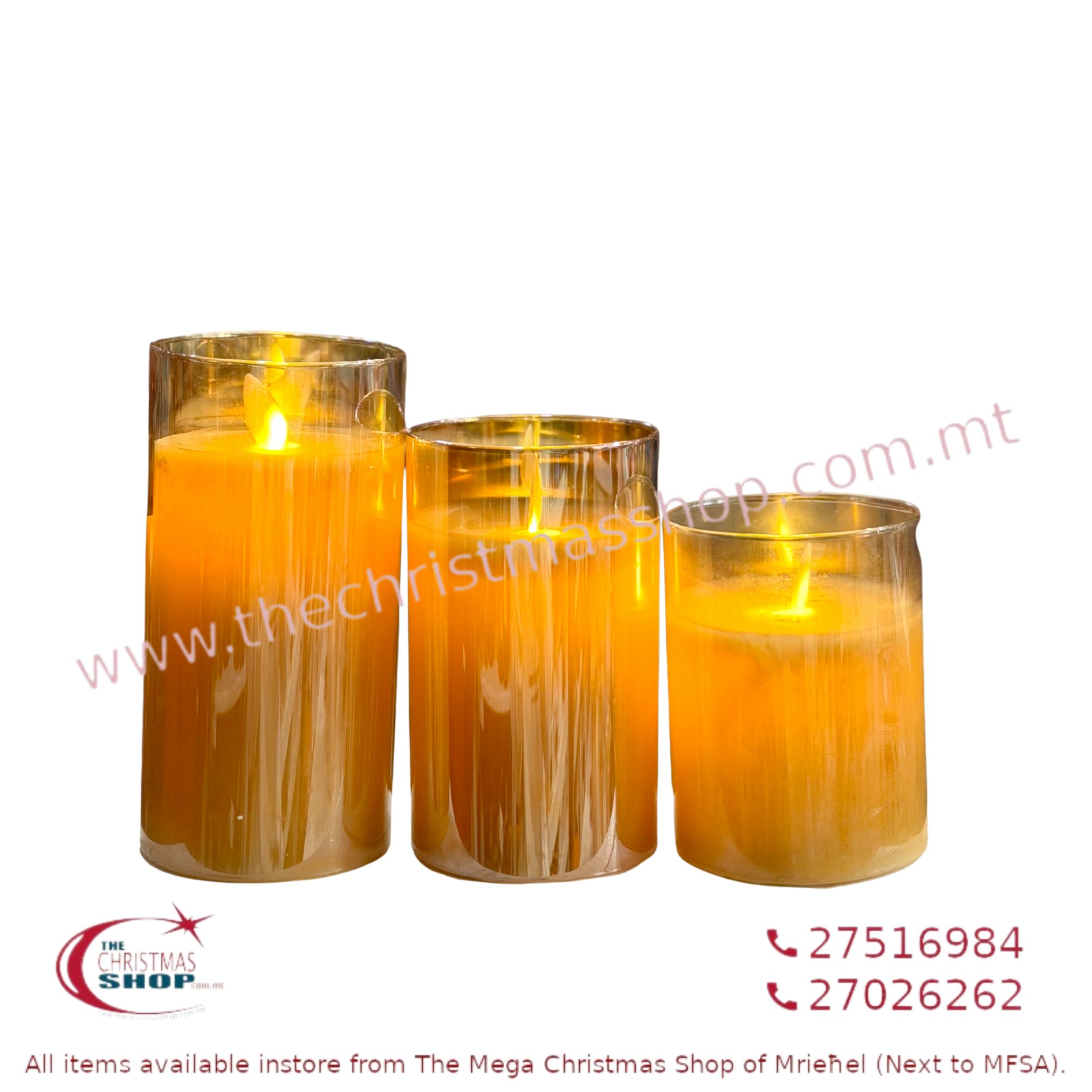 SET 3 GOLD CANDLES WITH MOVING FLAME. CUS25797