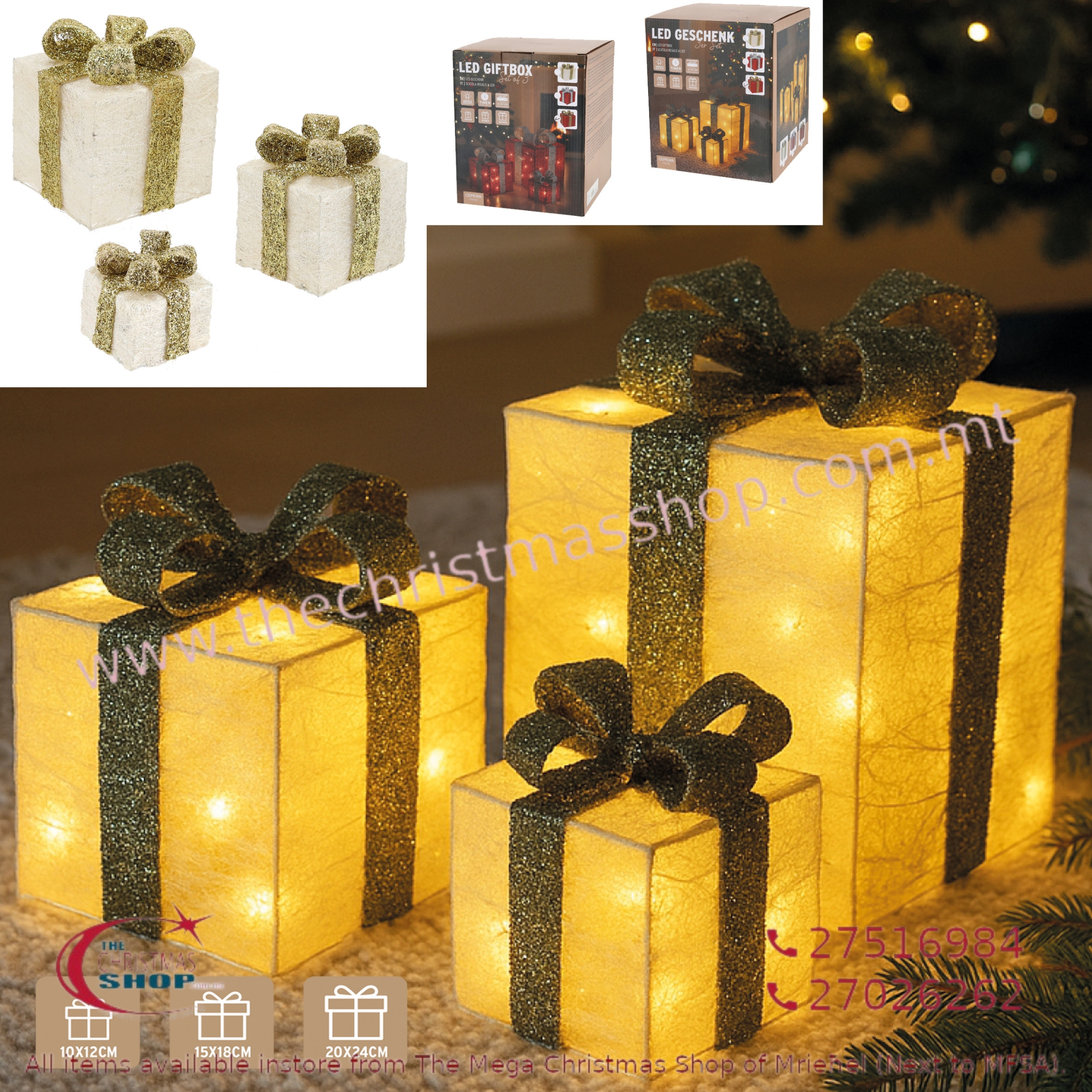 LED GIFTBOX CREME/GOLD, SET OF 3. CP89543O