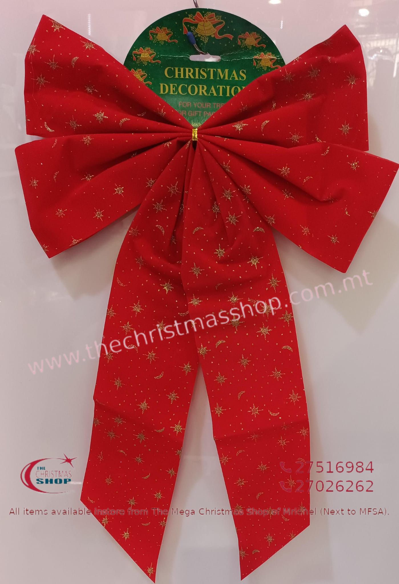RED LARGE BOW FOR OUTDOOR WITH GOLD STARS 35X65CMS 303060