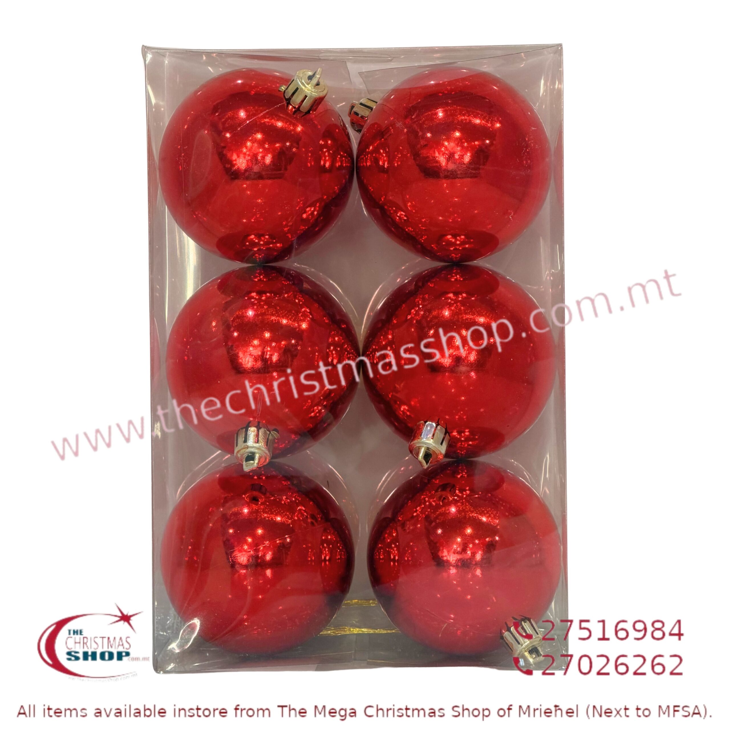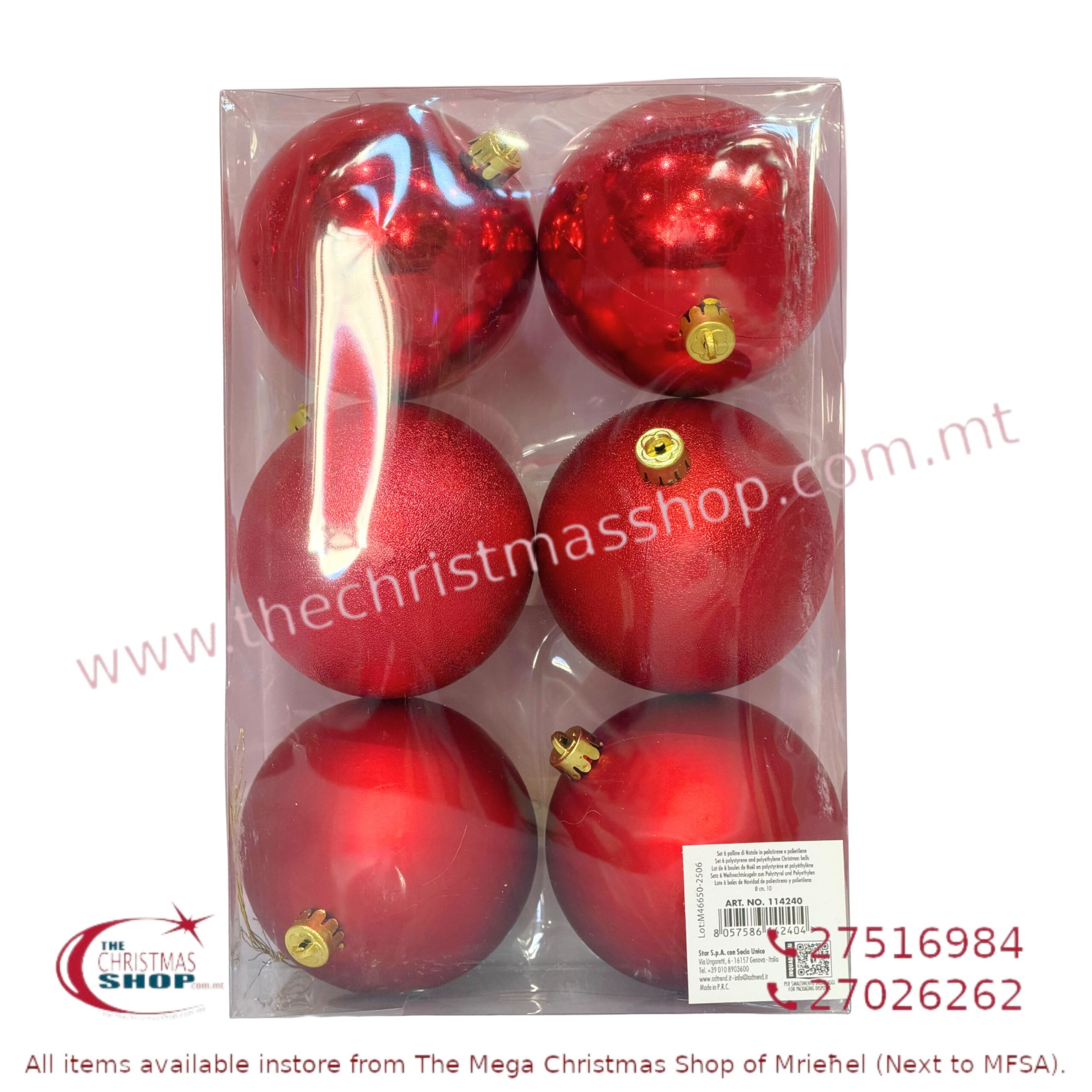 SET OF 6 RED BAUBLES. 10CMS. CG142404
