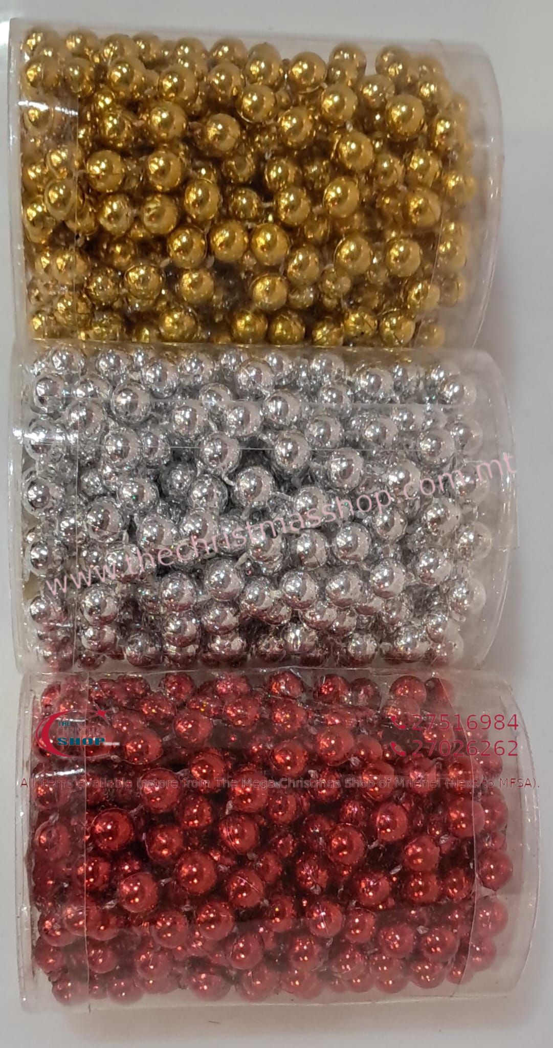 XMAS BEADS RED, SILVER AND GOLD 460CMS DZR763110