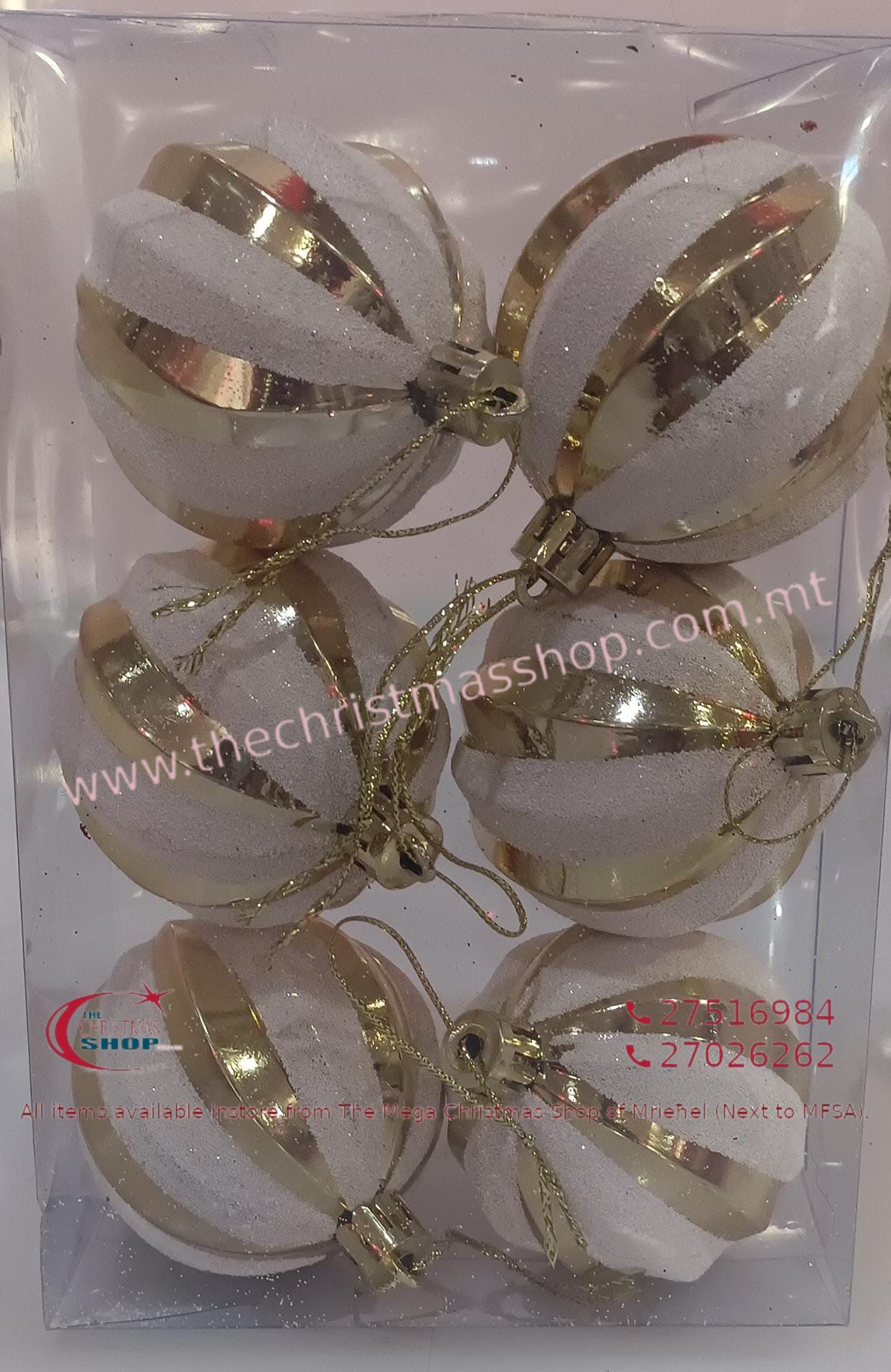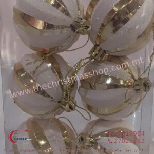 XMAS BOUBLES 6CMS WHITE WITH GOLD X6 DZR990554