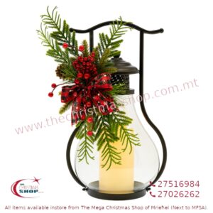 BLACK METAL LANTERN WITH BERRIES AND LED CANDLE. IL864258