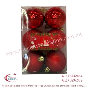 BOX OF 12 RED BAUBLES. 8CMS. CG814938